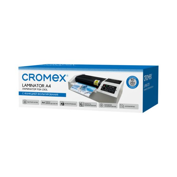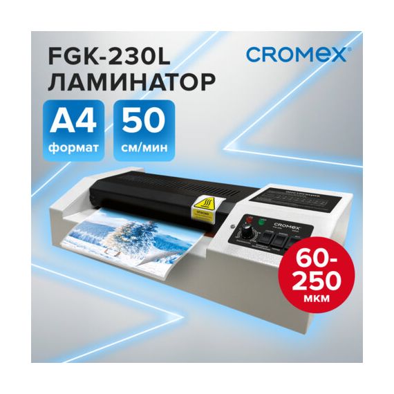 Ламинатор CROMEX (КРОМЕКС) FGK-230L, формат А4, толщина пленки 60-250 мкм, скорость 50 см/мин, 533123