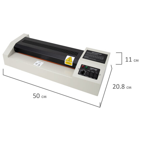 Ламинатор CROMEX FGK-320L способен заламинировать документы различных размеров от визитки до листа формата А3.