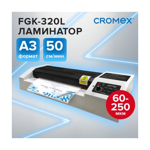 Ламинатор CROMEX (КРОМЕКС) FGK-320L формат А3, толщина пленки 60-250 мкм, скорость 50 см/мин, 533124