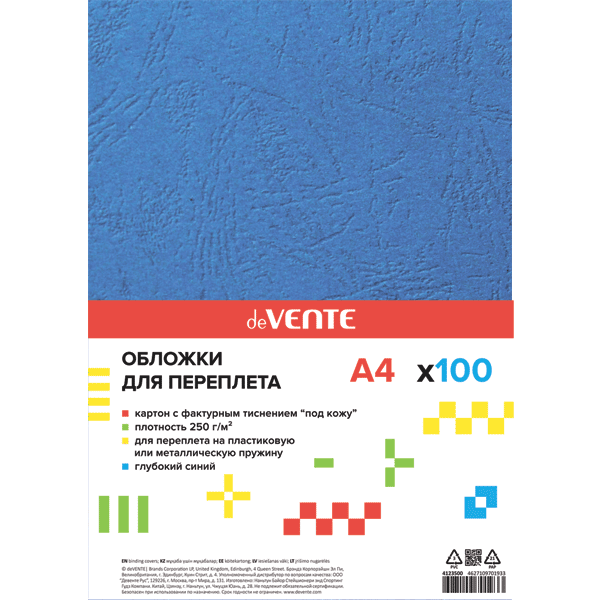 Обложка для переплета "deVENTE. Delta" A4, картон с тиснением "кожа" глубокий синий, плотность 250 (230) г/м², 100 л