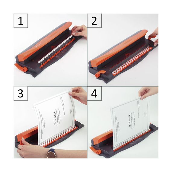 С ее помощью можно одновременно перфорировать 4 листа плотностью 80 г/м2 и подшивать до 50 листов формата А4. Идеальный набор характеристик для бытового переплетчика.
