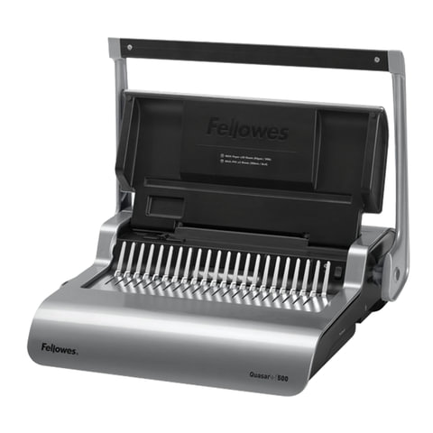 Переплетчик Fellowes Quasar+ прост и удобен в использовании. Широкая ручка под хват обеими руками намного снизит ваше усилие при перфорации листов. Вертикальная загрузка документа позволит автоматически выравниваться листам, чтобы не допускать случайный брак при перфорации. Наклон зубцов в 15 градусов позволит надежно фиксировать и раскрывать пружину.