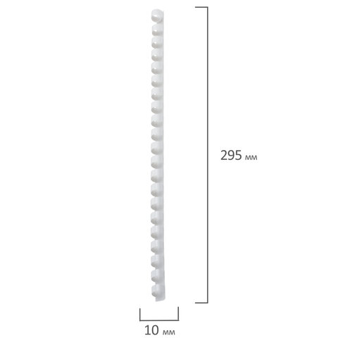 Рекомендуется использовать для переплета документов объемом от 41 до 55 листов. Изготовлена из высококачественного пластика белого цвета. Состоит из 21 кольца диаметром 10 мм. В упаковке 100 штук.