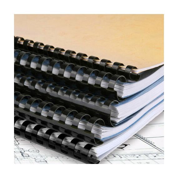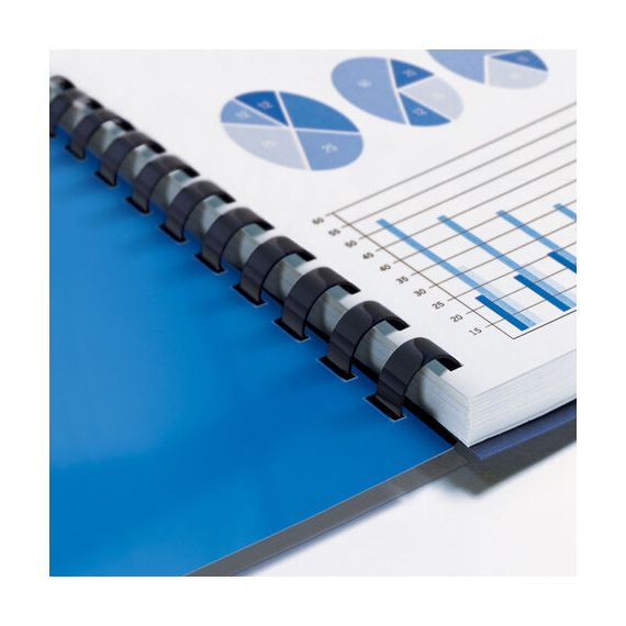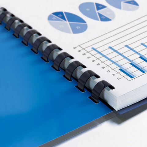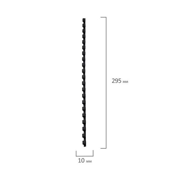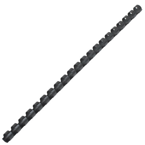 Рекомендуется использовать для переплета документов объемом от 41 до 55 листов. Изготовлена из высококачественного пластика чёрного цвета. Состоит из 21 кольца диаметром 10 мм. В упаковке 100 штук.