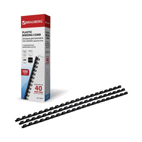 Пластиковая пружина для переплета документов BRAUBERG совместима с большинством переплетных машин. Преимуществом является возможность быстро извлечь документы из переплета или добавить листы в уже переплетенный документ.