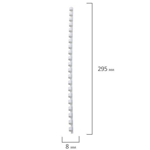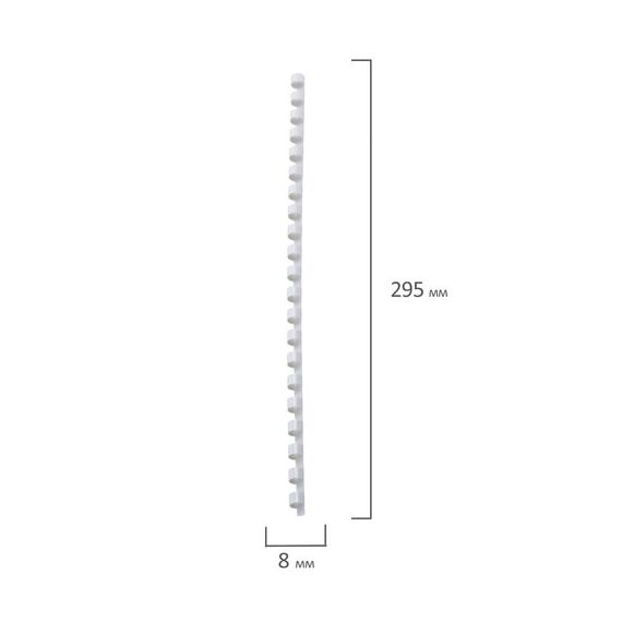 Рекомендуется использовать для переплета документов объемом от 21 до 40 листов. Изготовлена из высококачественного пластика белого цвета. Состоит из 21 кольца диаметром 8 мм. В упаковке 100 штук.
