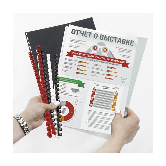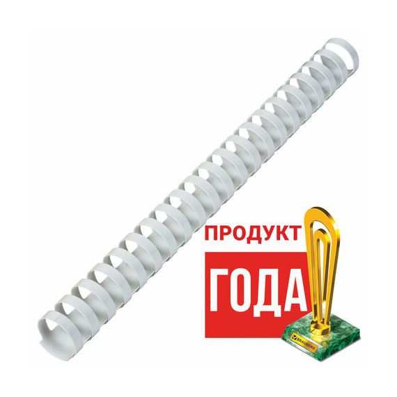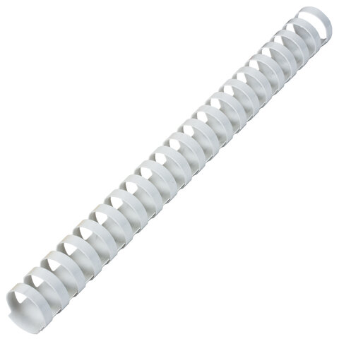 Рекомендуется использовать для переплета документов объемом от 181 до 200 листов. Изготовлена из высококачественного пластика белого цвета. Состоит из 21 кольца диаметром 25 мм. В упаковке 50 штук.