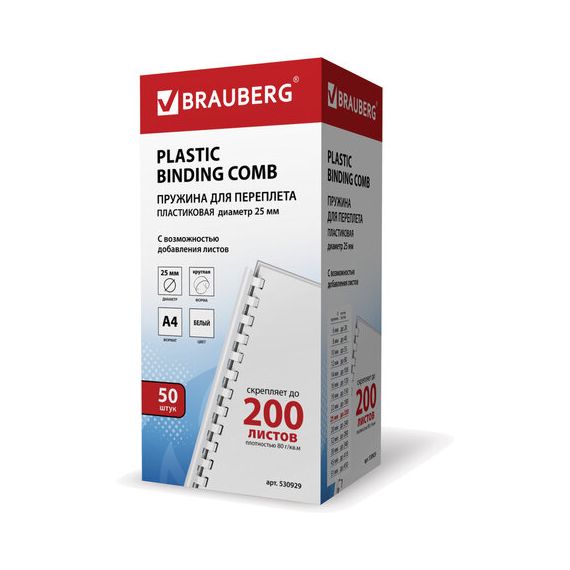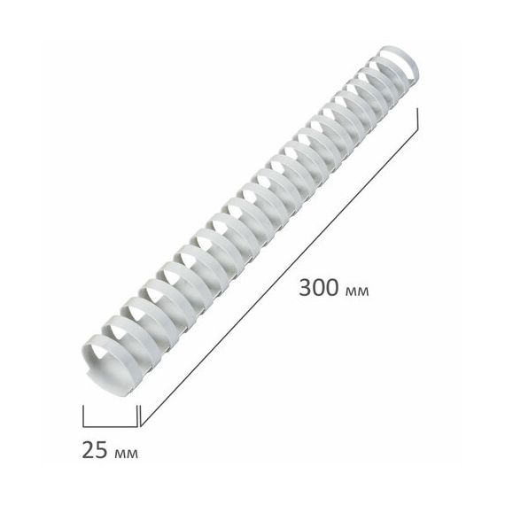 Пружины пластиковые для переплета, КОМПЛЕКТ 50 шт., 25 мм (для сшивания 181-200 л.), белые, BRAUBERG, 530929