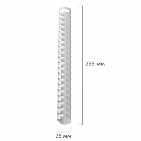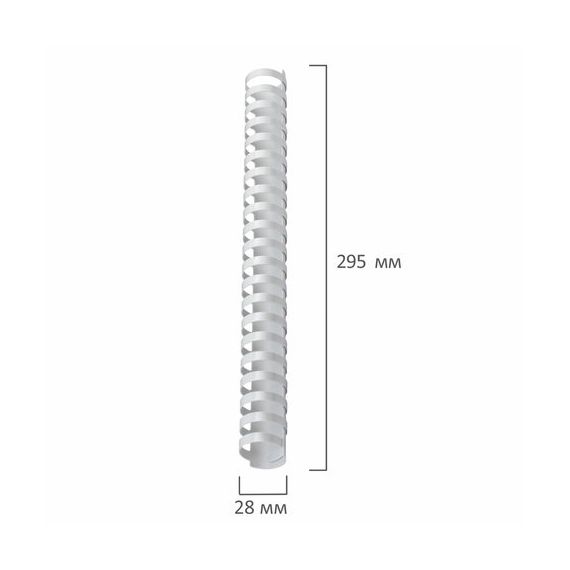 Рекомендуется использовать для переплета документов объемом от 201 до 240 листов. Изготовлена из высококачественного пластика белого цвета. Состоит из 21 кольца диаметром 28 мм. В упаковке 50 штук.