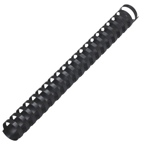 Рекомендуется использовать для переплета документов объемом от 201 до 240 листов. Изготовлена из высококачественного пластика чёрного цвета. Состоит из 21 кольца диаметром 28 мм. В упаковке 50 штук.