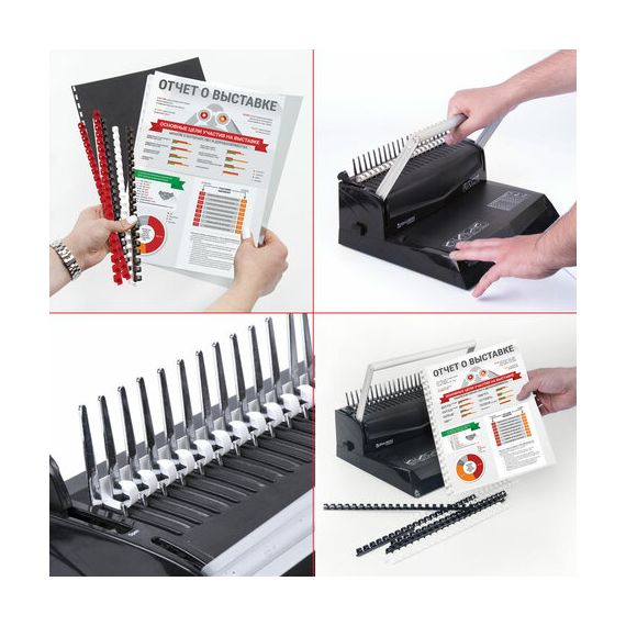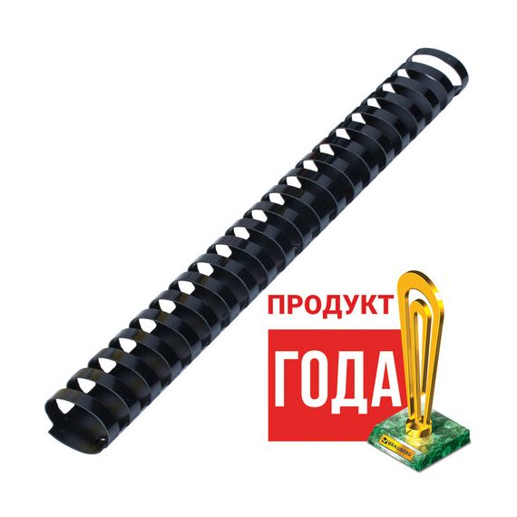 Рекомендуется использовать для переплета документов объемом от 241 до 280 листов. Изготовлена из высококачественного пластика чёрного цвета. Состоит из 21 кольца диаметром 32 мм. В упаковке 50 штук.
