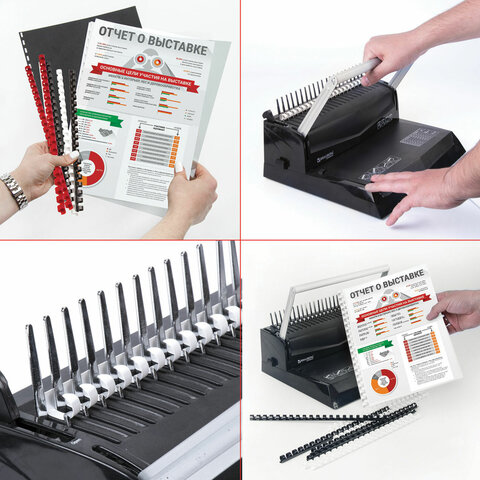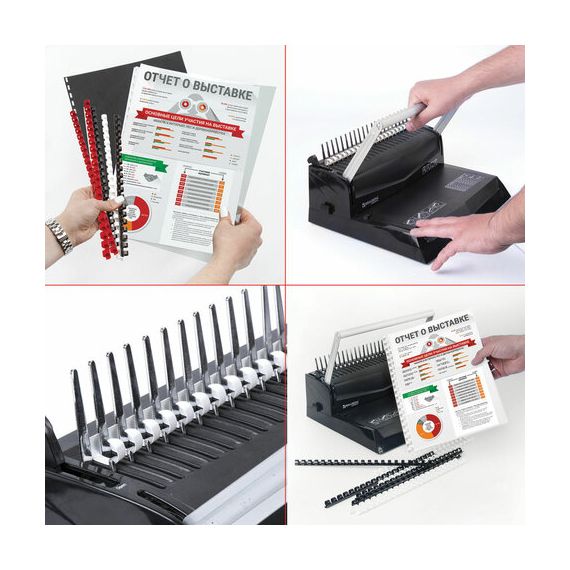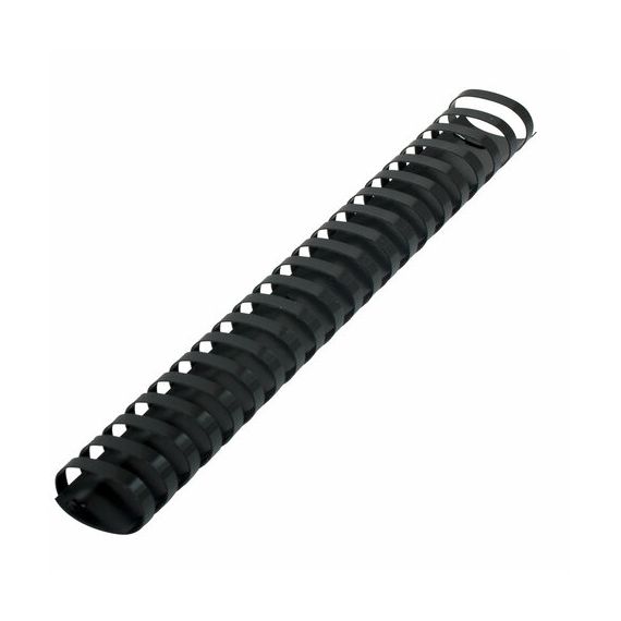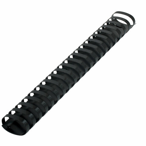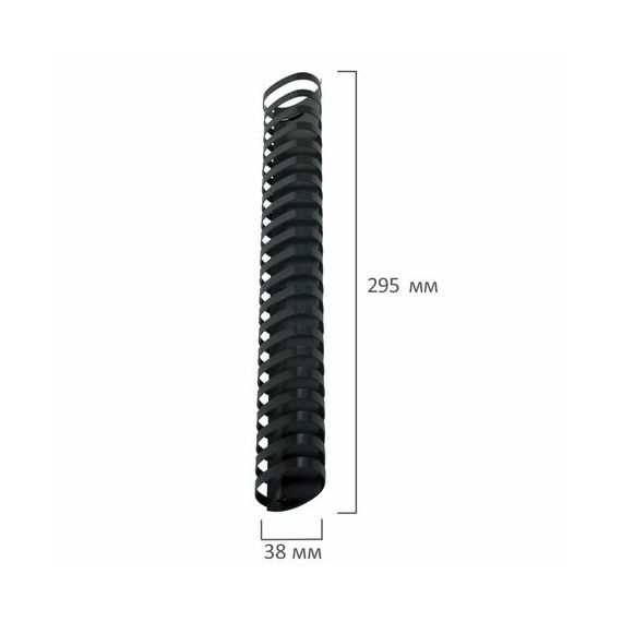 Рекомендуется использовать для переплета документов объемом от 281 до 340 листов. Изготовлена из высококачественного пластика чёрного цвета. Состоит из 21 кольца диаметром 38 мм. В упаковке 50 штук.