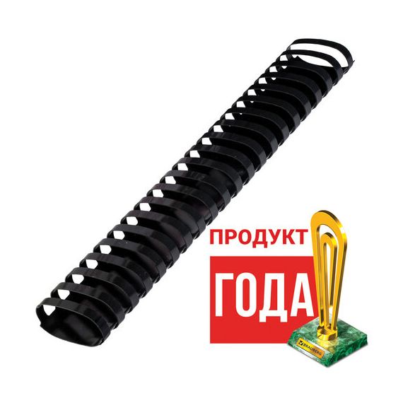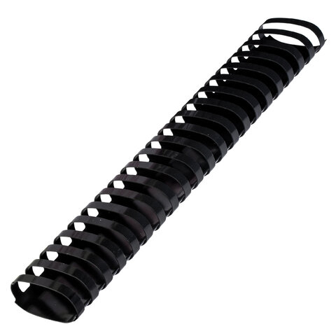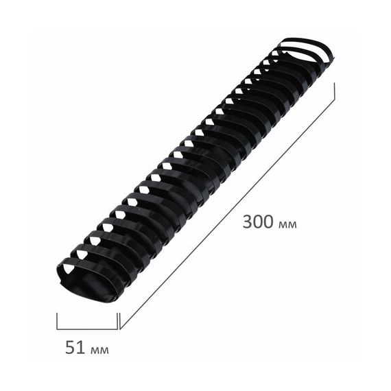 Рекомендуется использовать для переплета документов объемом от 411 до 450 листов. Изготовлена из высококачественного пластика чёрного цвета. Состоит из 21 кольца диаметром 51 мм. В упаковке 50 штук.