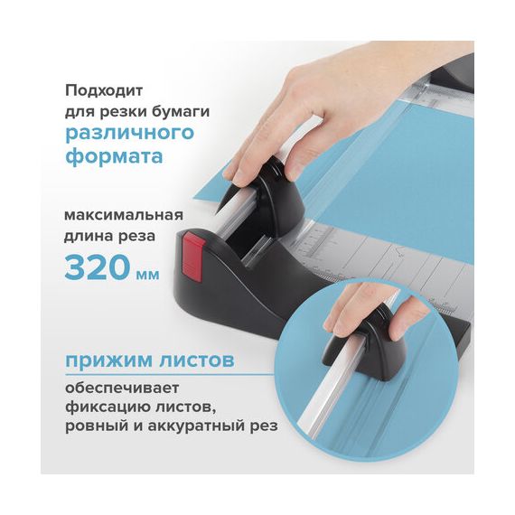 Резак роликовый BRAUBERG EXTRA A4 для дополнительной фиксации бумаги оснащен прижимом листов. Это приспособление значительно улучшит качество реза. В комплекте руководство пользователя и гарантийный талон.