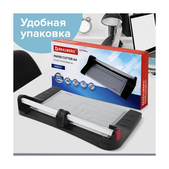 Резак роликовый BRAUBERG EXTRA A4, до 10 л., длина реза 320 мм, металлическое основание, 532325