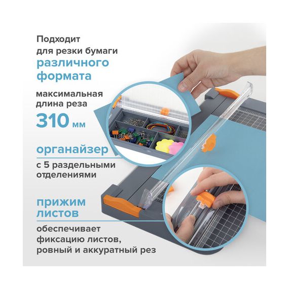 Резак роликовый с органайзером BRAUBERG SPECIAL, до 12 л., длина реза 310 мм, А4, 532329