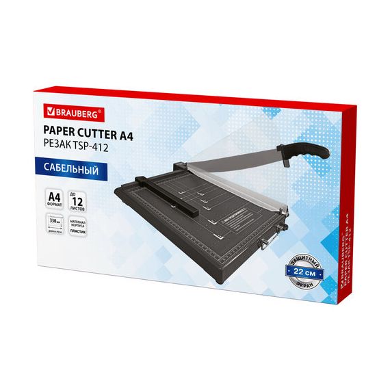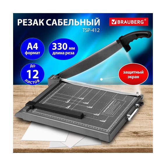 Резак сабельный BRAUBERG KATANA TSP-412, А4, на 12 л., длина реза 330 мм, пластиковое основание, защитный экран, 532987