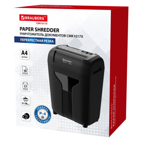 Уничтожитель (шредер) BRAUBERG CMK-1017х, 4 уровень секретности, 4х38 мм, 10 листов, корзина 17 литров, 533129