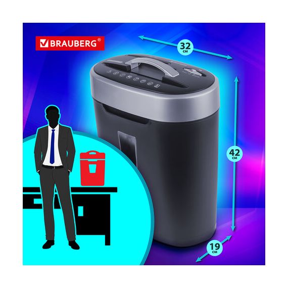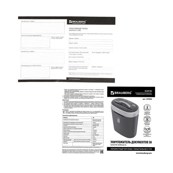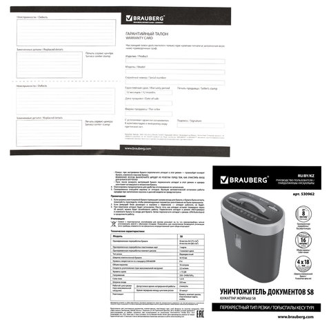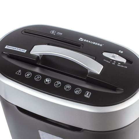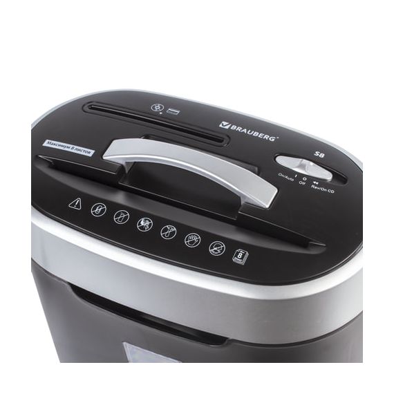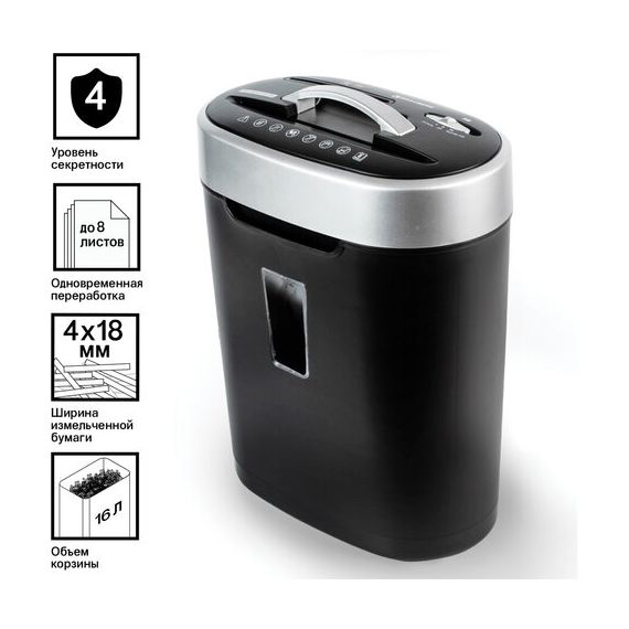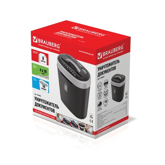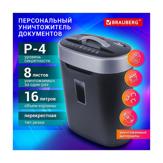 Уничтожитель (шредер) BRAUBERG S8, 4 уровень секретности, фрагменты 4х18 мм, 8 листов, корзина 16 литров, CD, 530962