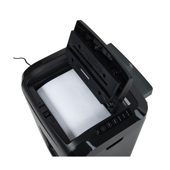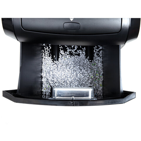 Отлично подходит для интенсивного персонального или коллективного использования в среднем и малом офисах. Резка на фрагменты размером 3x10 мм обеспечивает P-5 уровень секретности (DIN 66399). Устройство надежно уничтожит бумажные документы с очень уязвимыми и конфиденциальными данными, а также персональными данными. Рекомендуемое количество пользователей – 5-10 человек. За один раз уничтожает 150! листов формата А4 (при автоподаче) и 6 листов при вертикальной загрузке. Объем корзины составляет 25 литров.