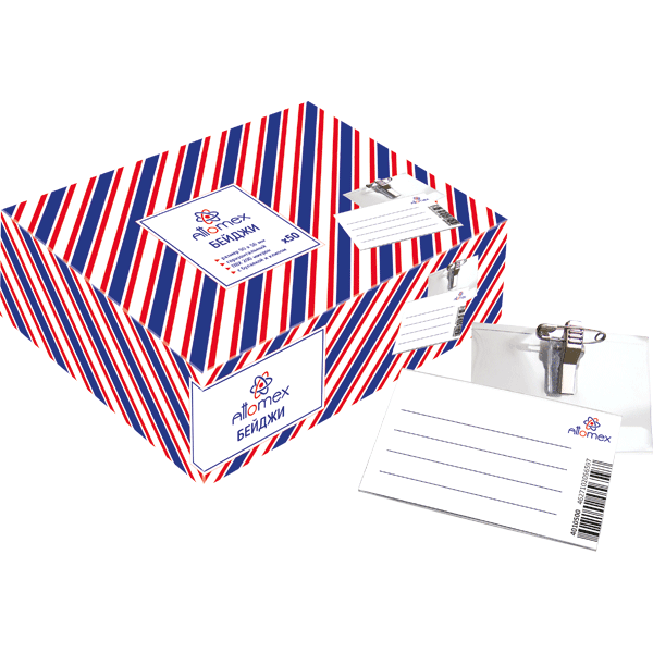Бейдж "Attomex" 90x56 мм, горизонтальный, 200 мкм, прозрачный, с булавкой и клипом