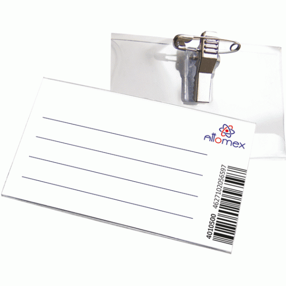 Бейдж "Attomex" 90x56 мм, горизонтальный, 200 мкм, прозрачный, с булавкой и клипом