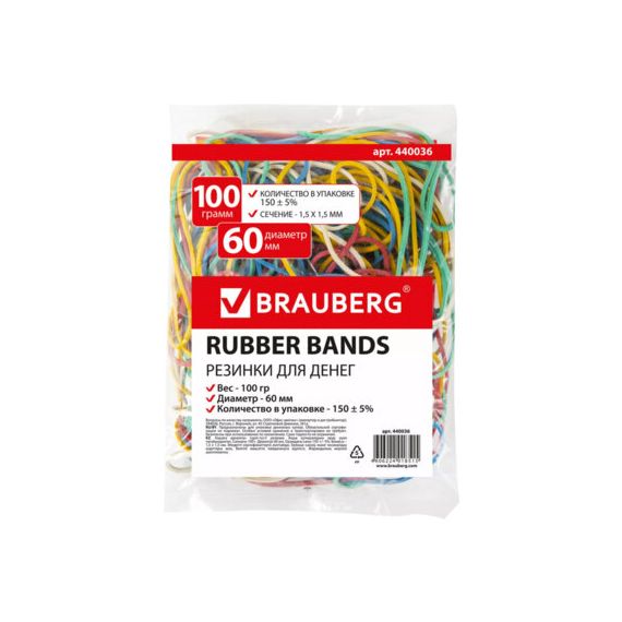 Банковские резинки BRAUBERG незаменимы во многих сферах жизни – они активно используются в банковском деле, бухгалтерии, офисах, рукоделии и быту. предназначены для фасовки и упаковки денежных купюр.