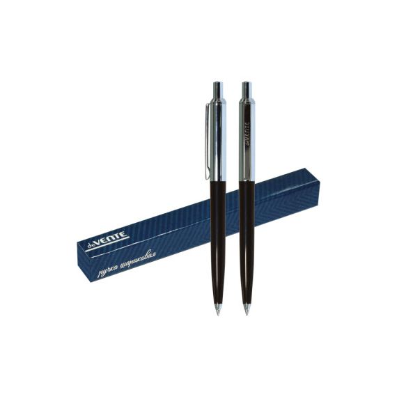 Ручка шариковая подарочная "deVENTE" d=1 мм, черным корпусом и хромированными элементами, сменный стержень, в подарочной коробке, синие чернила