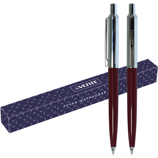 Ручка шариковая подарочная "deVENTE" d=1 мм, красным корпусом и хромированными элементами, сменный стержень, в подарочной коробке, синие чернила