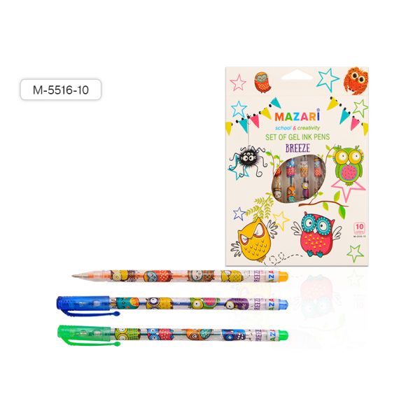 Набор ручек гелевых 10 цв. с блестками BREEZE
