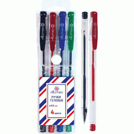 Набор ручек гелевых "Attomex" 04 стандартных цвета, d=0,5 мм, прозрачный корпус с металлическим наконечником, сменный стержень, в пластиковом блистере