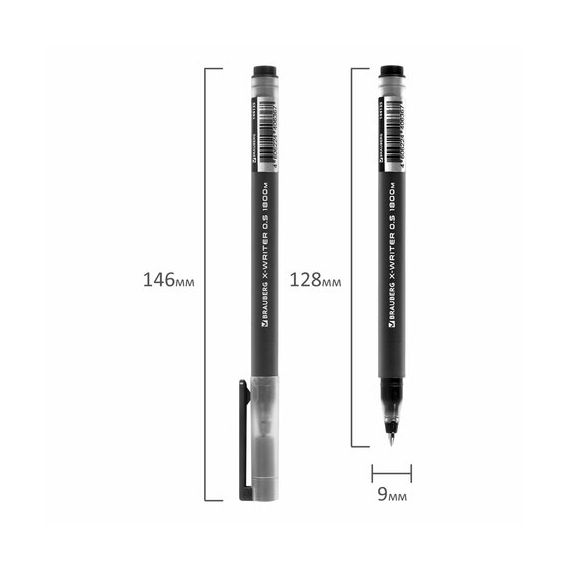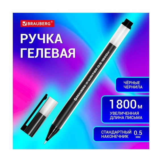 Ручка гелевая BRAUBERG "X-WRITER 1800", УВЕЛИЧЕННАЯ ДЛИНА ПИСЬМА 1 800 м, ЧЕРНАЯ, стандартный узел 0