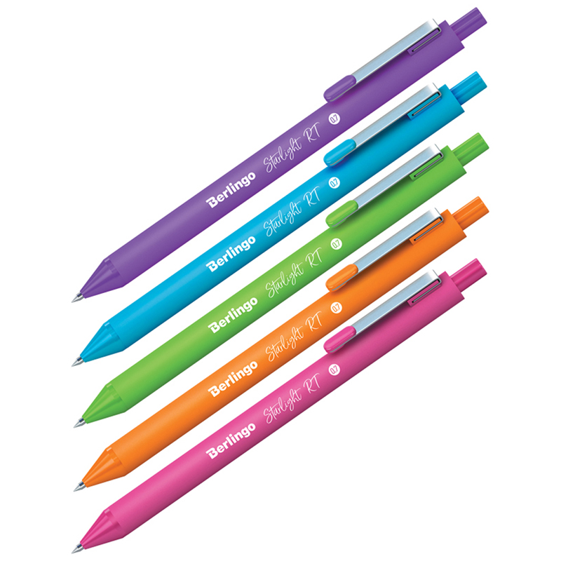 Ручка шариковая автоматическая Berlingo Starlight RT украсит любой рабочий стол и поможет создать отличное настроение. Бархатистое покрытие корпуса Soft touch создаёт особый комфорт при использовании ручки. Ручка оснащена надёжным металлическим клипом, который позволит зафиксировать ручку на кармане одежды или ежедневнике. Диаметр пишущего узла составляет 0,7 мм, благодаря чему ручка прекрасно подходит для любого стиля письма.