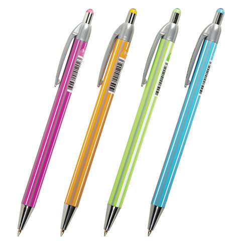 Элегантная автоматическая шариковая ручка BRAUBERG "Stripes" с изящным дизайном в виде полосок на корпусе.