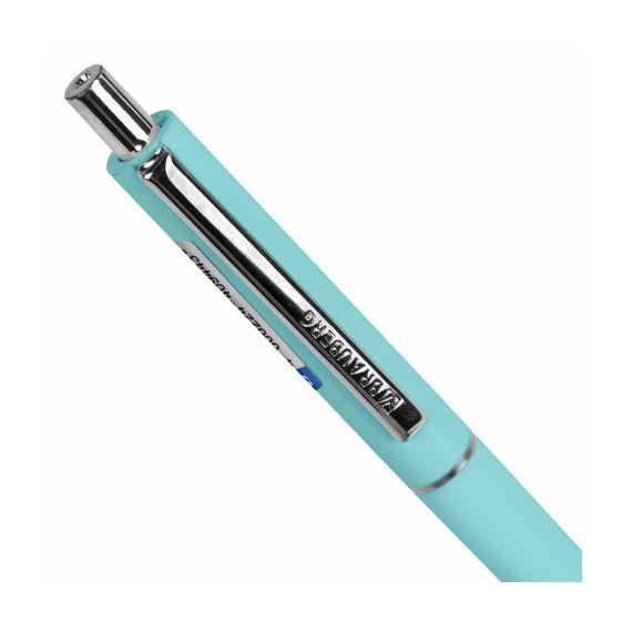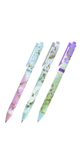 Классическая автоматическая шариковая ручка. Имеет нежные пастельные цвета корпуса ассорти. Кнопка, клип и кольцо посередине выполнены из металла. Укомплектована стержнем синего цвета длиной 107 мм со стандартным наконечником. Диаметр пишущего узла 0,7 мм создает линию письма, равную 0,5 мм. Цвет чернил – синий.