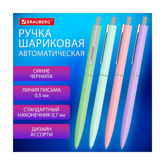 Ручка шариковая автоматическая BRAUBERG X17 PASTEL, СИНЯЯ, стандартный узел 0,7 мм, линия письма 0,5