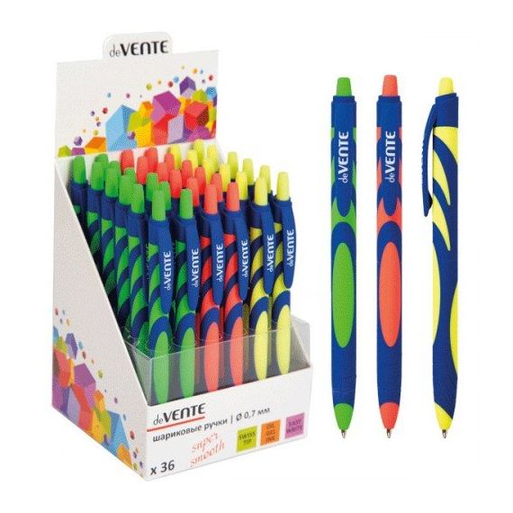 Ручка шариковая автоматическая "deVENTE. Enigma" d=0,7 мм, ультра гладкое письмо, немецкие чернила на масляной основе, швейцарский пишущий узел, цветной корпус с покрытием Soft Touch, индивидуальная маркировка, сменный стержень, синяя