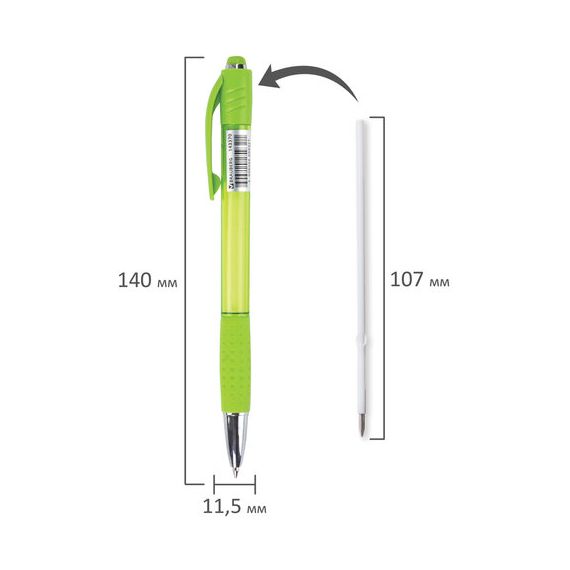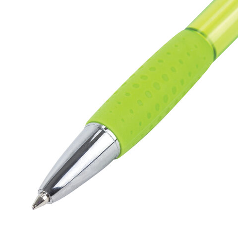Ручка шариковая автоматическая с грипом BRAUBERG SUPER, СИНЯЯ, корпус зеленый, пишущий узел 0,7 мм,