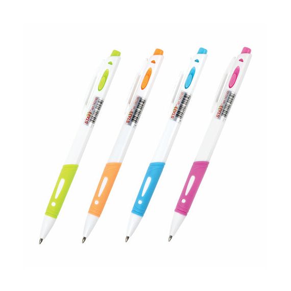 Автоматическая шариковая ручка STAFF "BP-16 White" с ярким дизайном и удобной прорезиненной зоной захвата.
