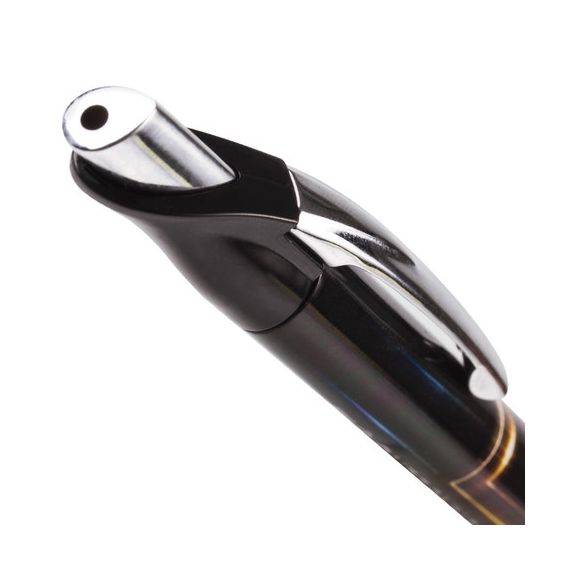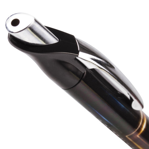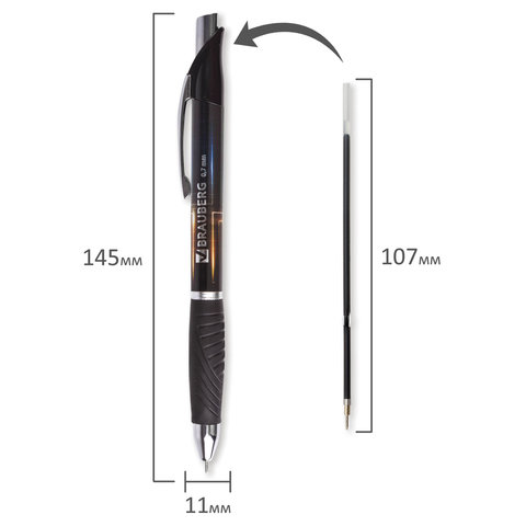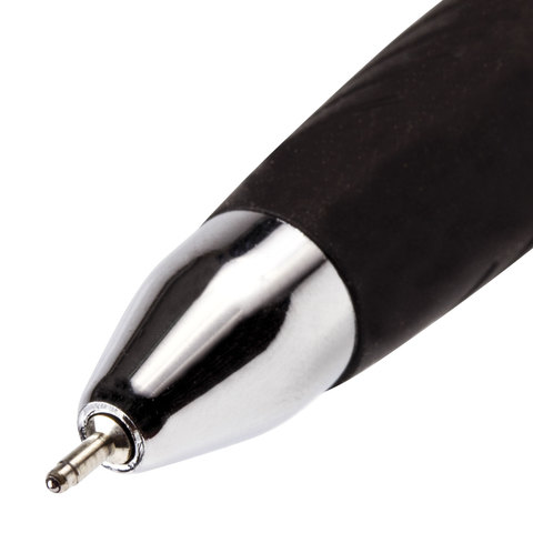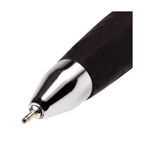 Имеет круглый корпус черного цвета с печатью и резиновым грипом в зоне захвата для удобства письма. Сменный стержень длиной 107 мм с игольчатым наконечником позволит использовать ручку максимально долго. Диаметр пишущего узла, равный 0,7 мм, создает тонкую линию письма, равную 0,35 мм. Специальные масляные чернила синего цвета ультрапониженной вязкости и надежный пишущий узел обеспечивают непревзойденно мягкое и комфортное письмо.