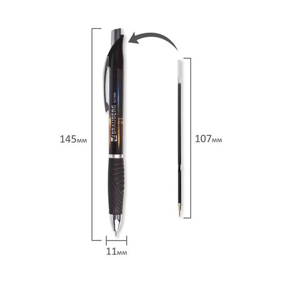 Ручка шариковая масляная автоматическая с грипом BRAUBERG "Jet-Z", СИНЯЯ, узел 0,7 мм, линия письма