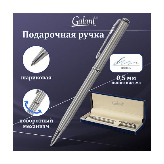 Ручка подарочная шариковая GALANT "Arrow Chrome", корпус серебристый, хромированные детали, пишущий узел 0,7 мм, синяя, 140408