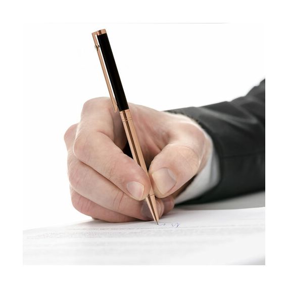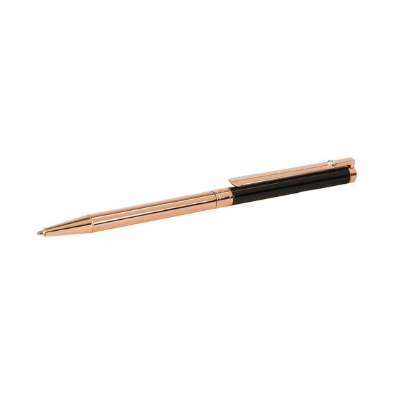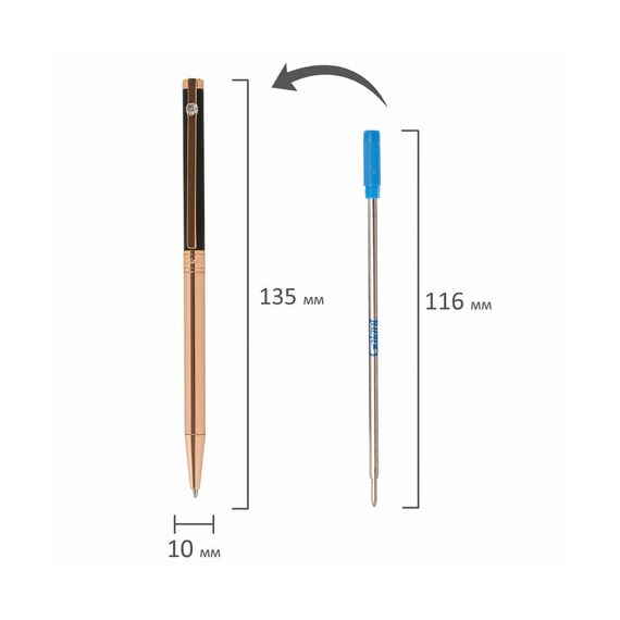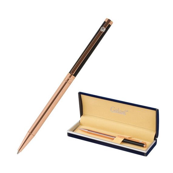 Изящная модель ручки с корпусом из латуни черно-золотого цвета и декоративным кристаллом прекрасно лежит в руке. Синий цвет чернил; длина стержня составляет 116 мм, а диаметр пишущего узла - 0,7 мм. Поставляется в индивидуальном подарочном футляре. Подходит для гравировки.