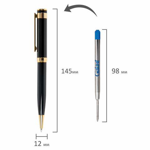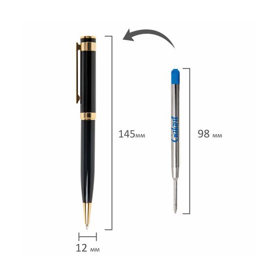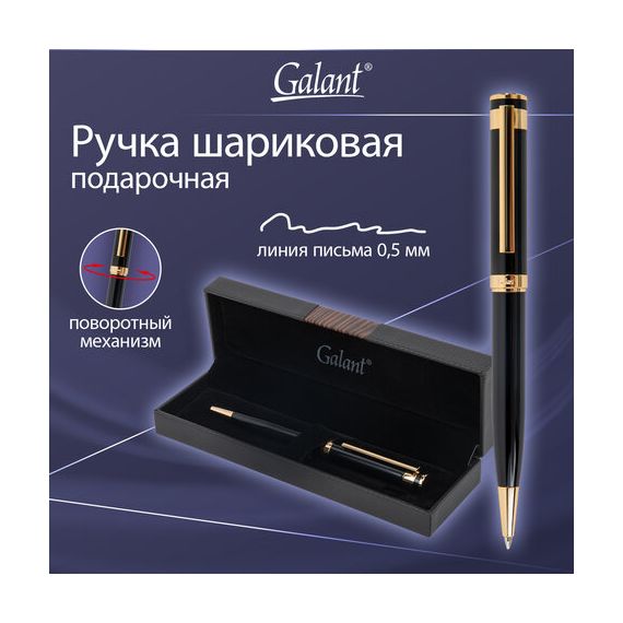 Ручка подарочная шариковая GALANT "Bernini", корпус черный, детали золото, узел 0,7 мм, линия письма 0,5 мм, синяя, 144177