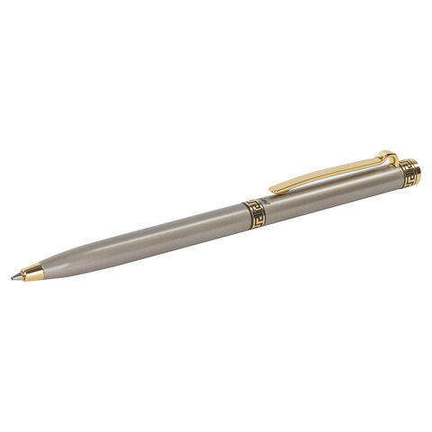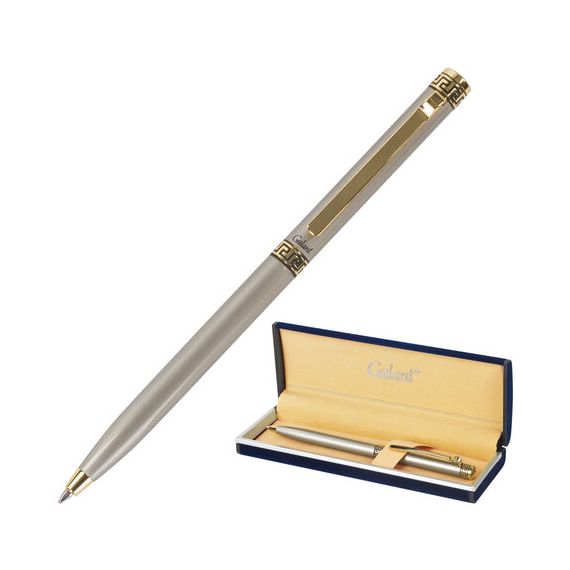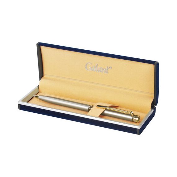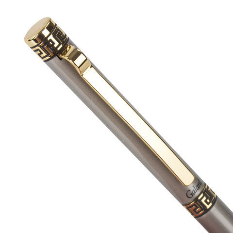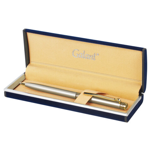 Ручка подарочная шариковая GALANT "Brigitte", тонкий корпус, серебристый, золотистые детали, пишущий узел 0,7 мм, синяя, 141009