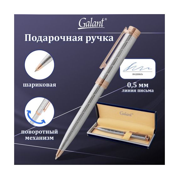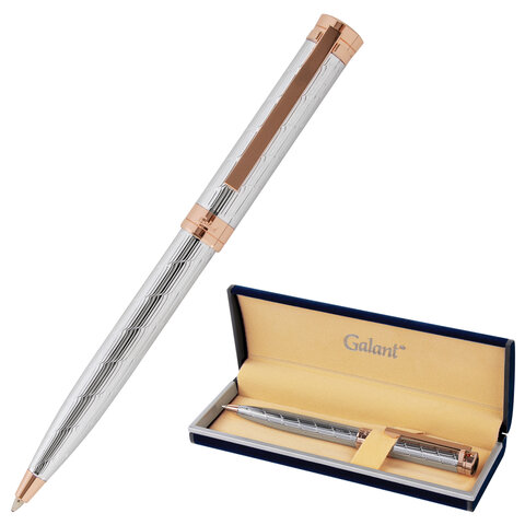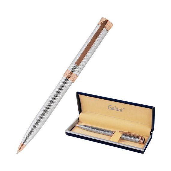 Ручка подарочная шариковая GALANT "ESQUISSE", корпус серебристый, детали розовое золото, узел 0,7 мм, синяя, 143511
