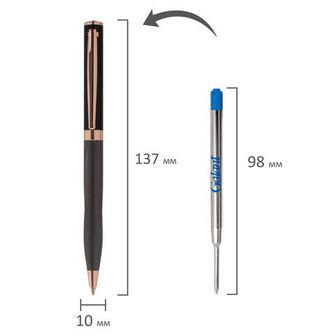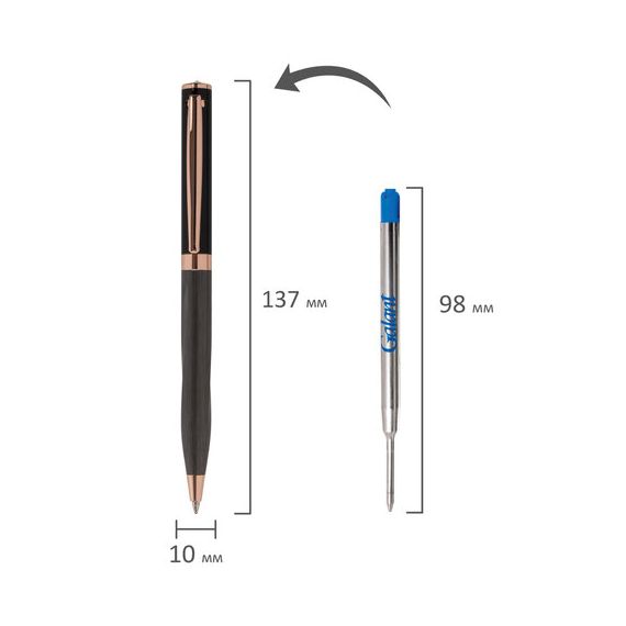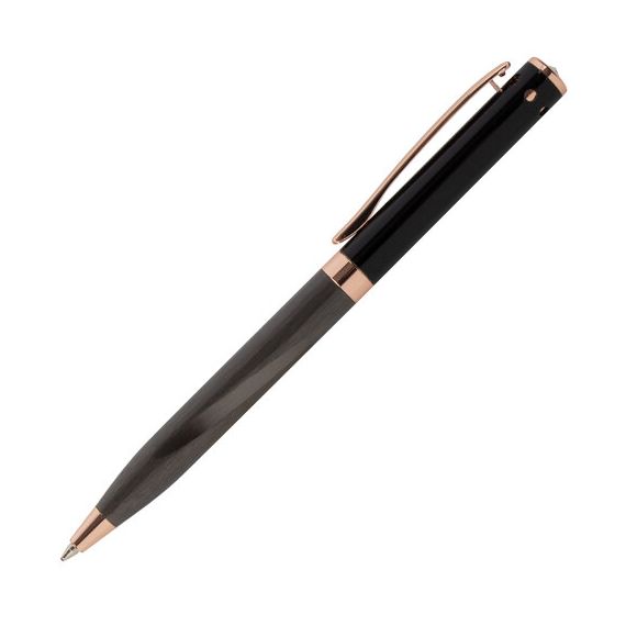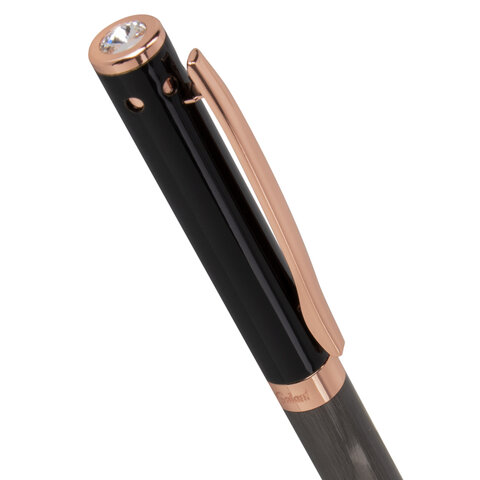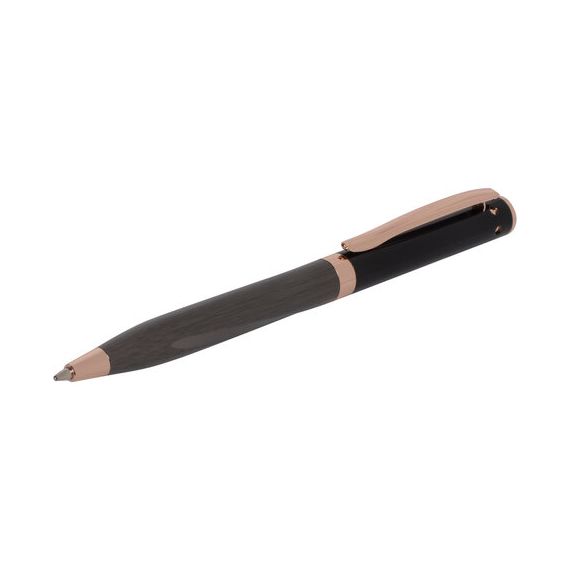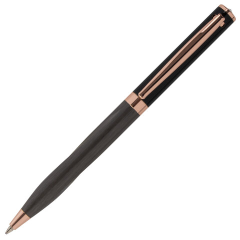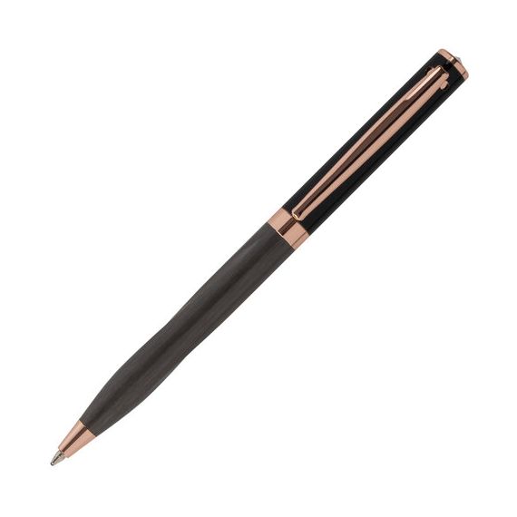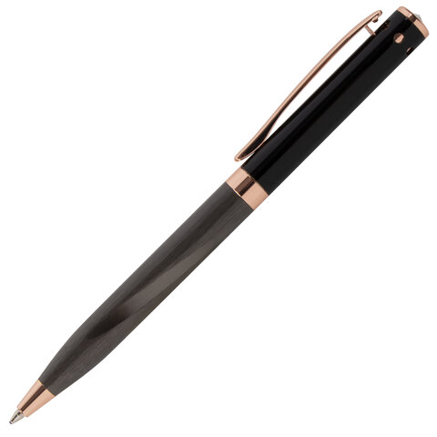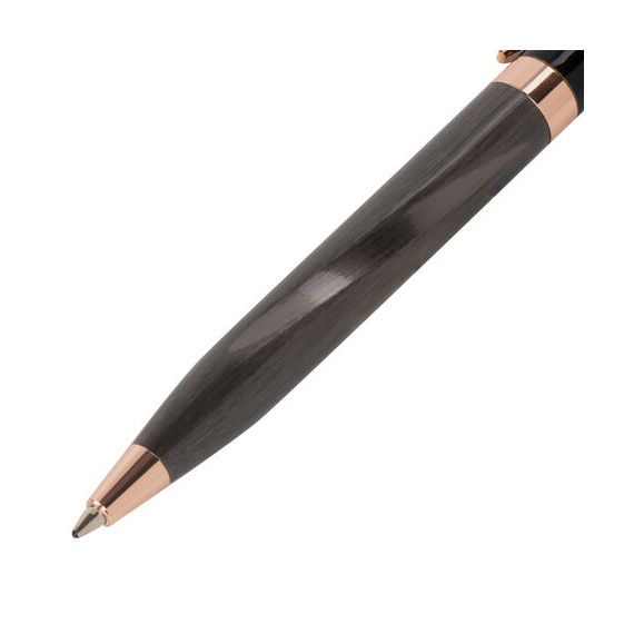 Утонченная модель ручки с корпусом из латуни цвета оружейный металл с деталями, выполненными в цвете розовое золото. Синий цвет чернил; длина стержня составляет 98 мм, а диаметр пишущего узла - 0,7 мм. Поставляется в индивидуальном подарочном футляре. Подходит для гравировки.