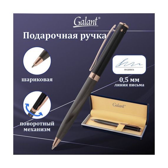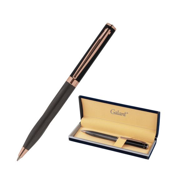 Ручка подарочная шариковая GALANT "FACTURA", корпус черный/оружейный металл, детали розовое золото, узел 0,7 мм, синяя, 143513