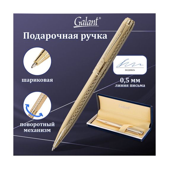 Ручка подарочная шариковая GALANT "Graven Gold", корпус золотистый с гравировкой, золотистые детали, пишущий узел 0,7 мм, синяя, 140466