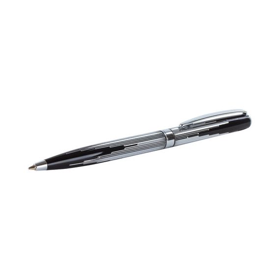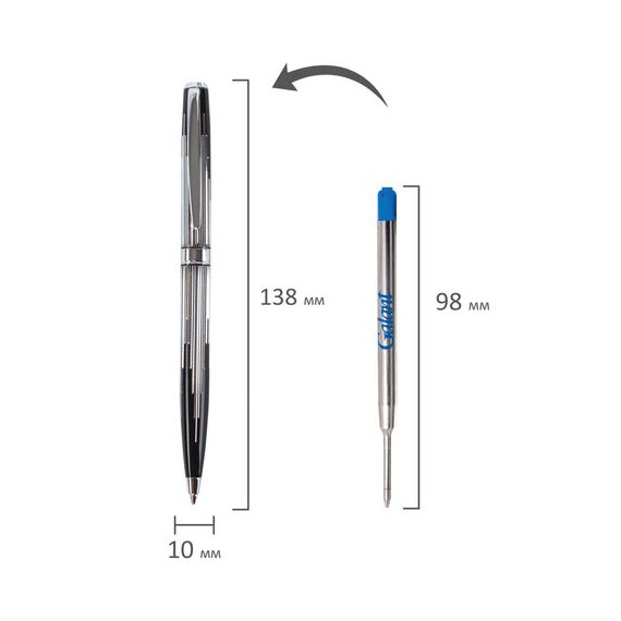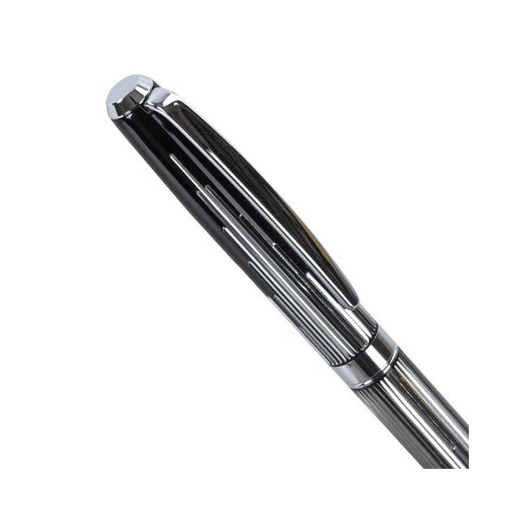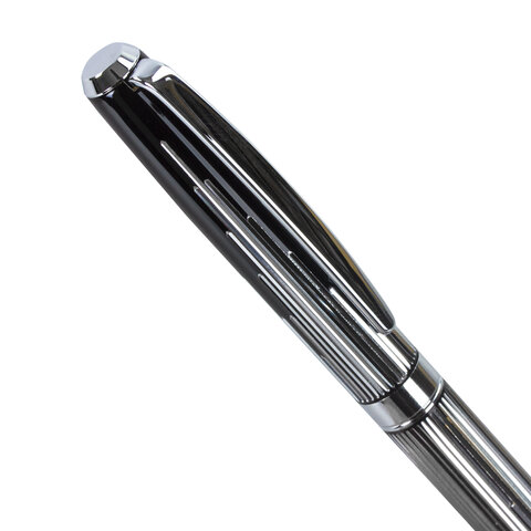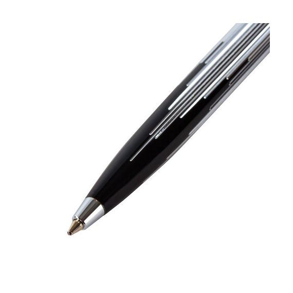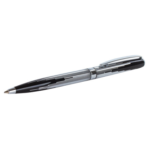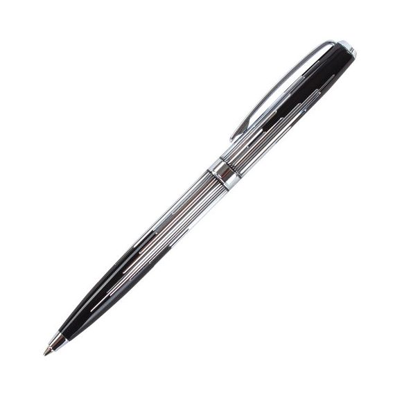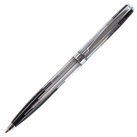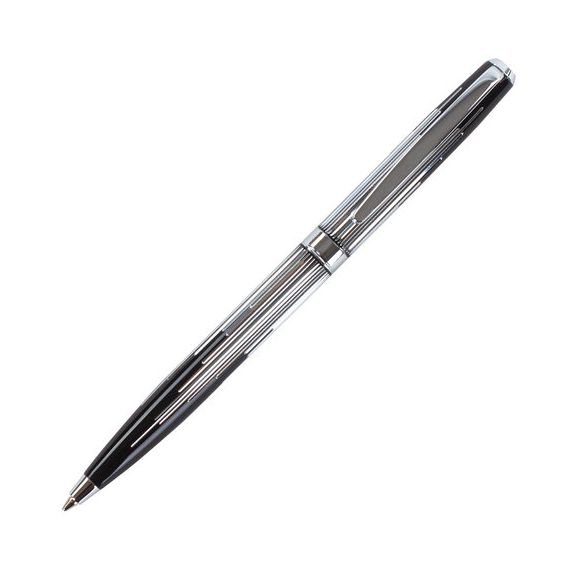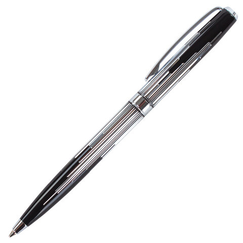 Корпус ручки оригинального сочетания черного и серебристого цветов выполнен из латуни и украшен декоративной гравировкой. Синий цвет чернил, длина стержня составляет 98 мм, а диаметр пишущего узла - 0,7 мм. Поставляется в индивидуальном подарочном футляре. Подходит для гравировки.